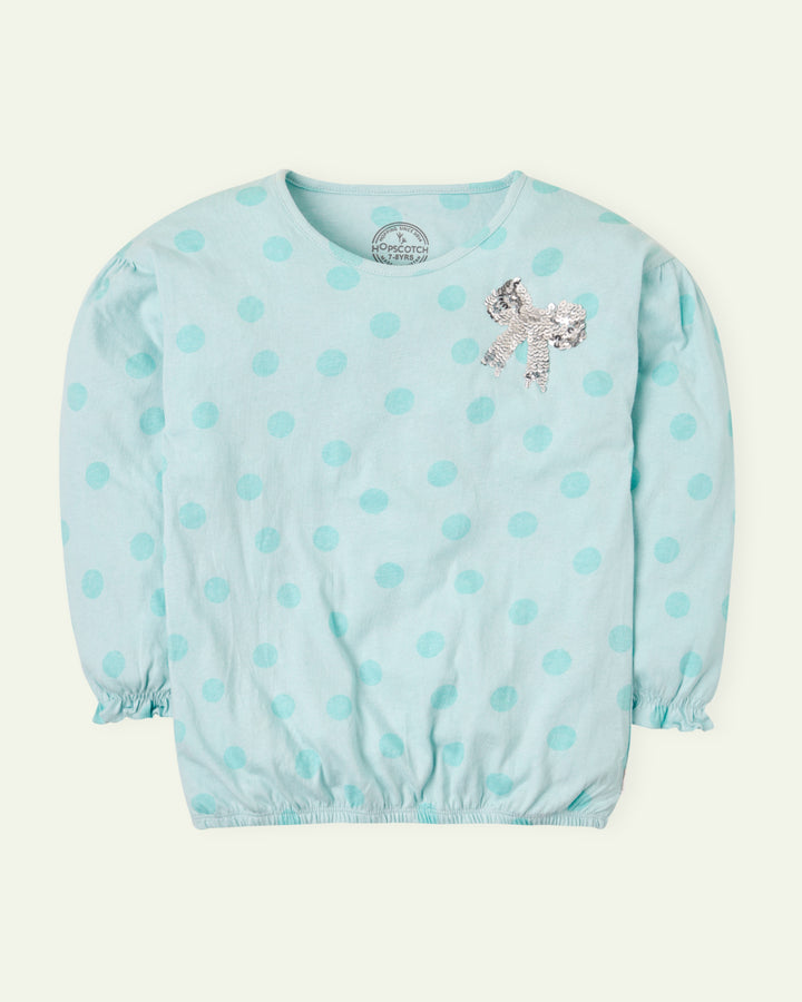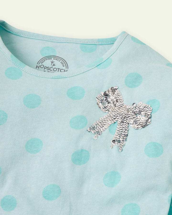 Smile for the polka dots! This soft cotton polka dots top comes with a sequined bow on top to add some bling. The elasticated sleeves are for a cute look. – Sequins – Elasticated Sleeve Hems and Waist – 100% Cotton – Machine Wash Cold