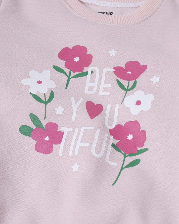 Let her be her own gorgeous self this winter in this cute fleece sweatshirt and jogger pants set. – Fleece Sweatshirt: Ribbed Crew Neck – Fleece Sweatpants: Elastic Waist, Drawstrings, Cross Pockets – Machine Wash Cold