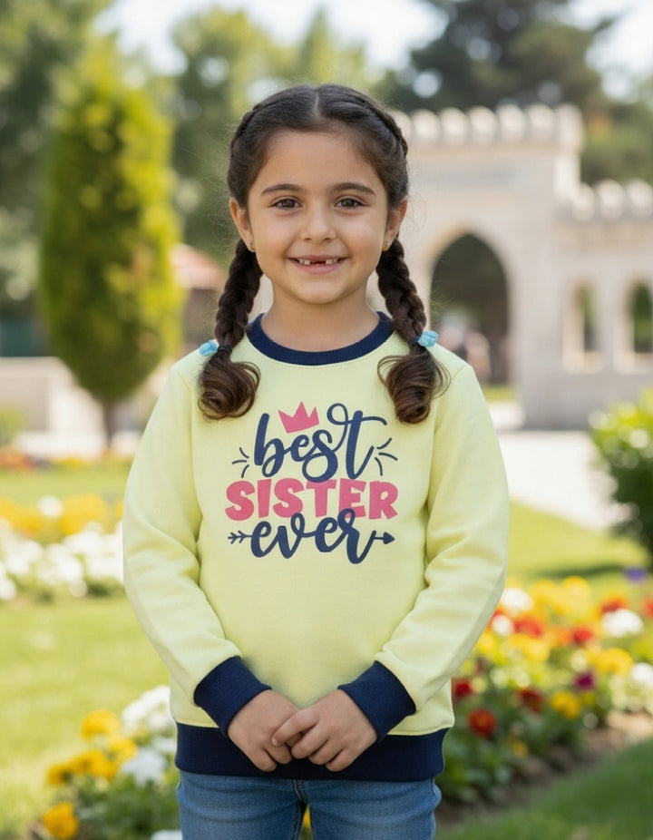 A pop of neon and a sweet message makes this sweatshirt perfect for the bestest sister around. -Fleece -Machine Wash Cold