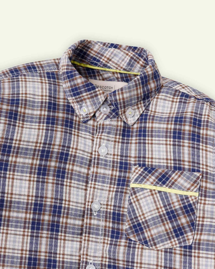 Add this check shirt to his wardrobe for hangouts with friends. It comes with contrast thread details in the buttons differentiating it from regular shirts. – Contrast Thread Details – Branded Hopscotch Buttons – 100% Cotton – Machine Wash Cold