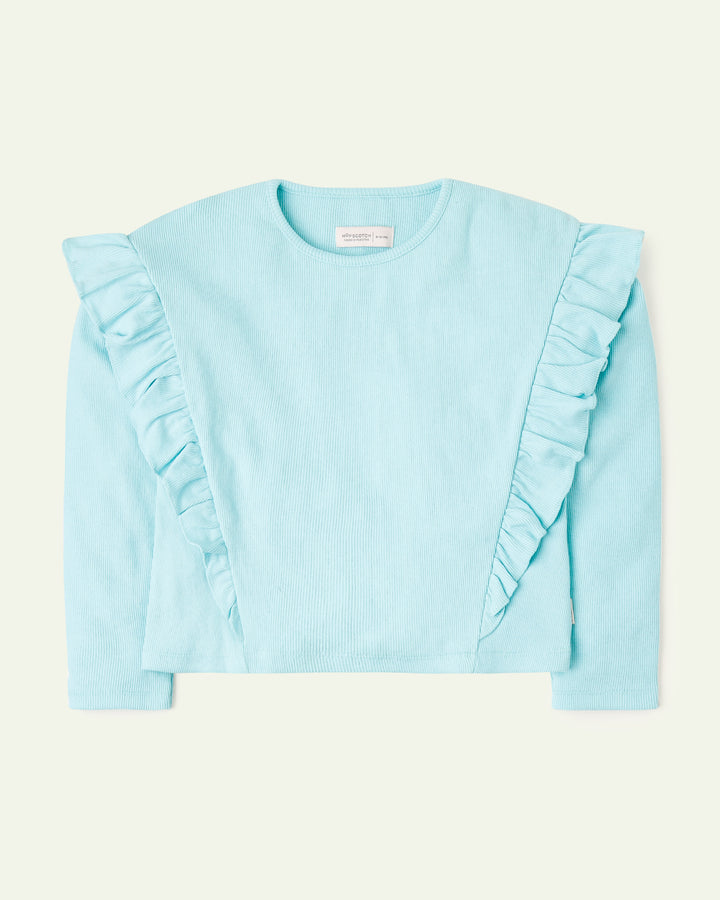 Frills and thrills for your little girl in the sweetest shade of blue. -100% Cotton -Frill Details -Machine Wash Cold