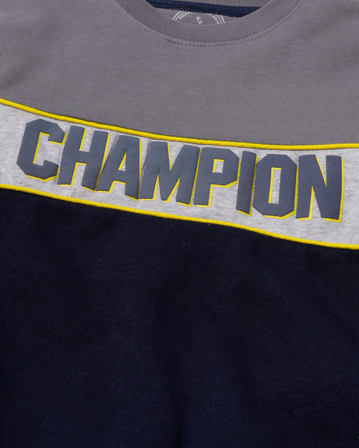A cool cut and sew sweatshirt featuring bold flock print details for little champs. -Fleece -Cut & Sew -Puff Print -Machine Wash Cold