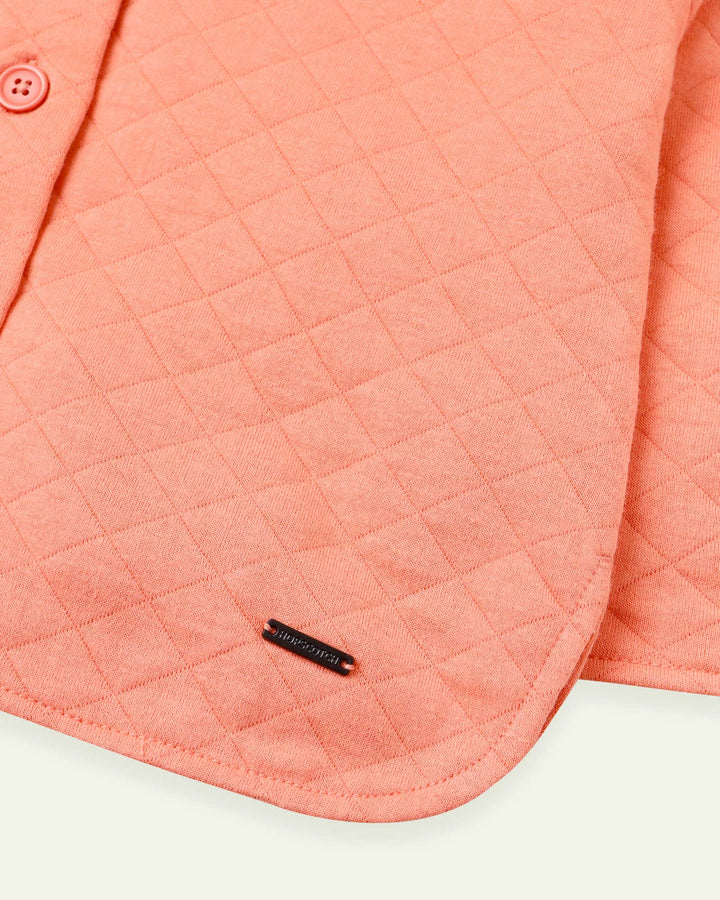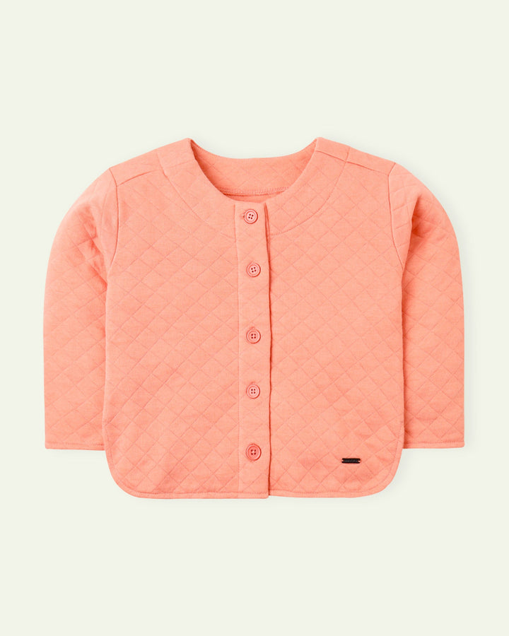 Keep it cute and cozy in this quilted jacket designed in a buttoned down style with a crew neck for easy wearing and layering! – Signature Metal Plate – Quilted Round Hem – Cotton/Poly – Handwash or Dry Clean
