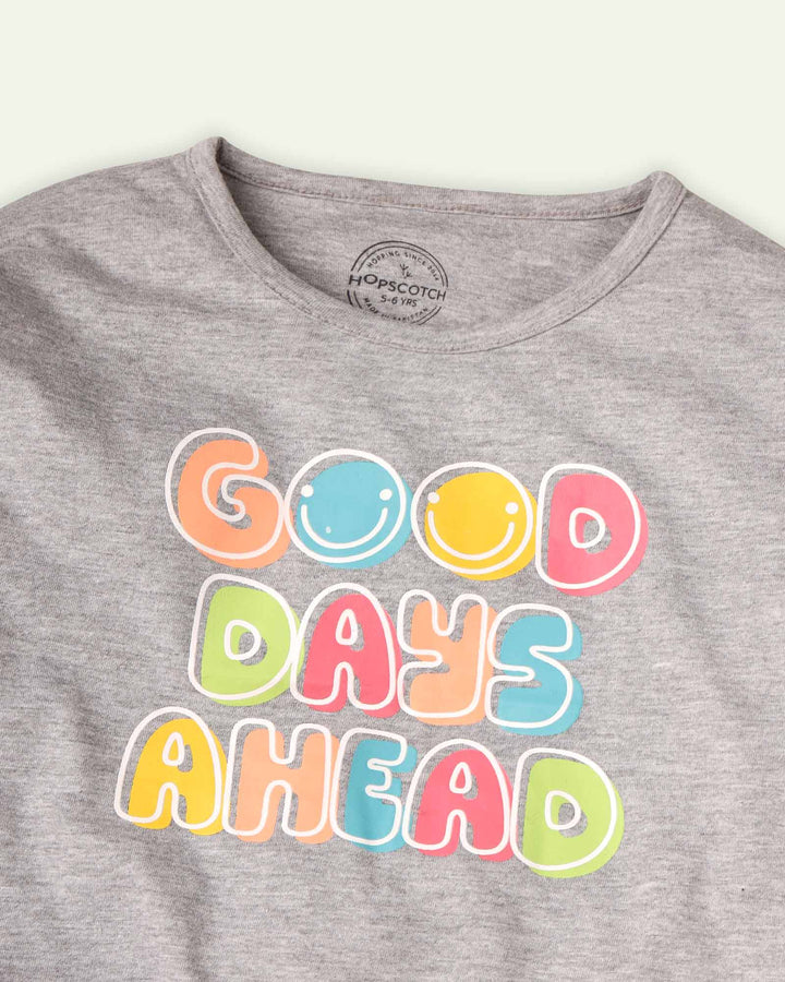 Your little girl will have only good days in this soft cotton t-shirt with screen printing on top. The front knot style is another added detail that makes it fun and stylish to wear. – Screen Printing – Heather – 100% Cotton – Machine Wash Cold
