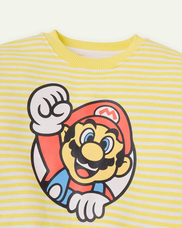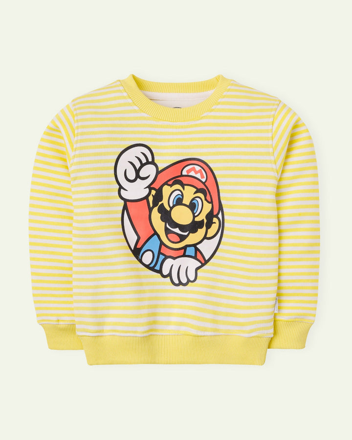 Keep it fun and cozy in this striped sweatshirt with bright screen printing on top. – Screen Printing – Fleece – Machine Wash Cold