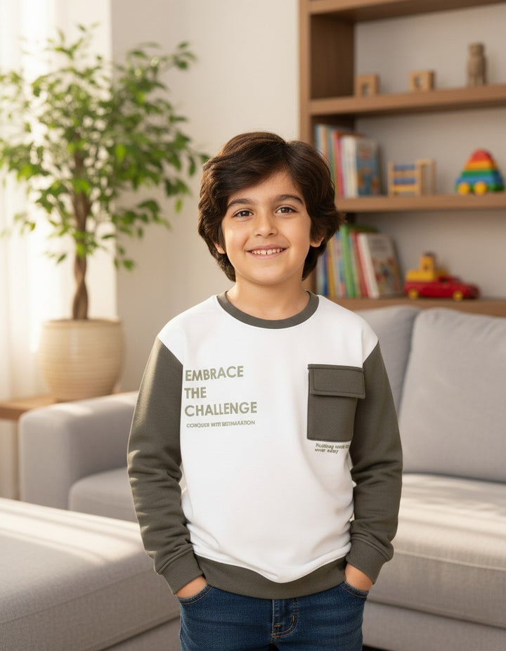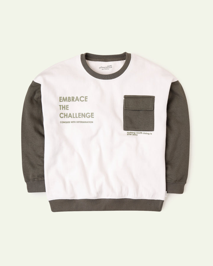 A classic combo of olive green and white makes this fleece sweatshirt with HD printing a must-have for any wardrobe. -Cotton/Poly -Oversized -HD Print -Flap Patch Pocket -Machine Wash Cold