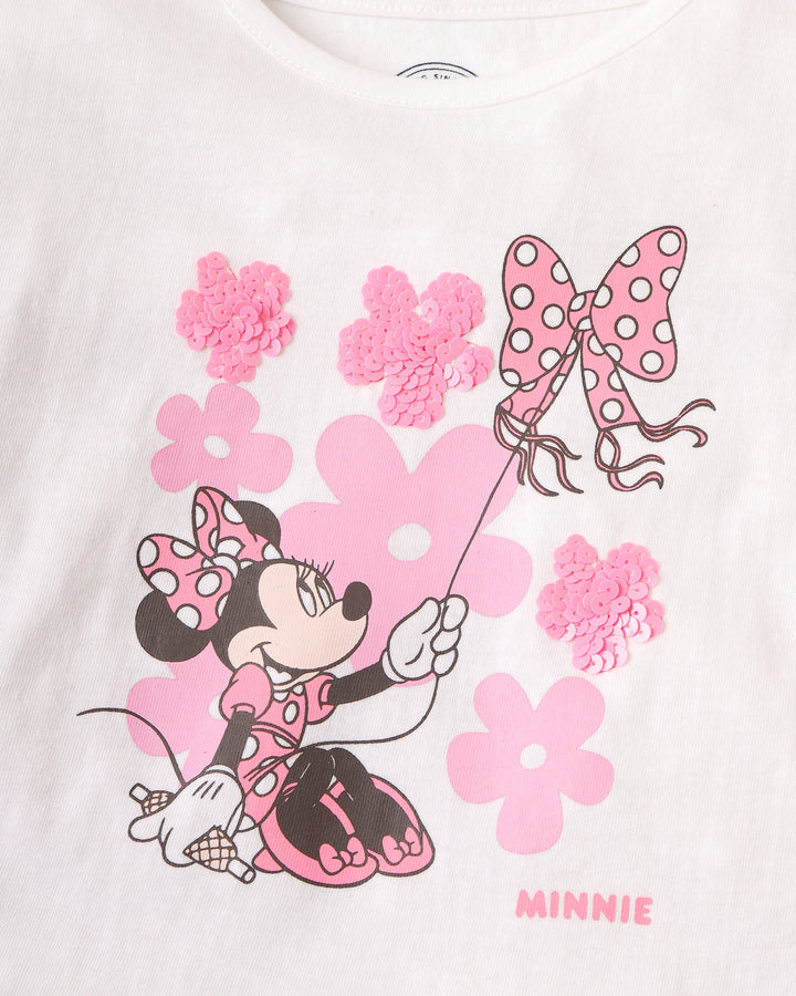 Soft white t-shirt with your favourite cartoon print and sequin flowers. – Boxy Crop - Machine wash cold - 100% Cotton