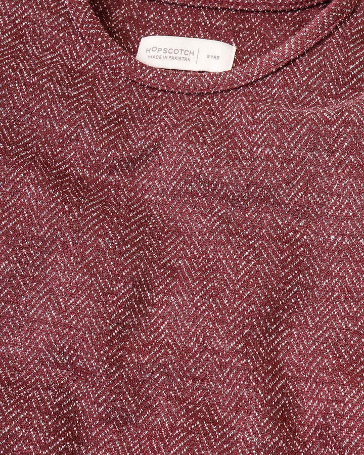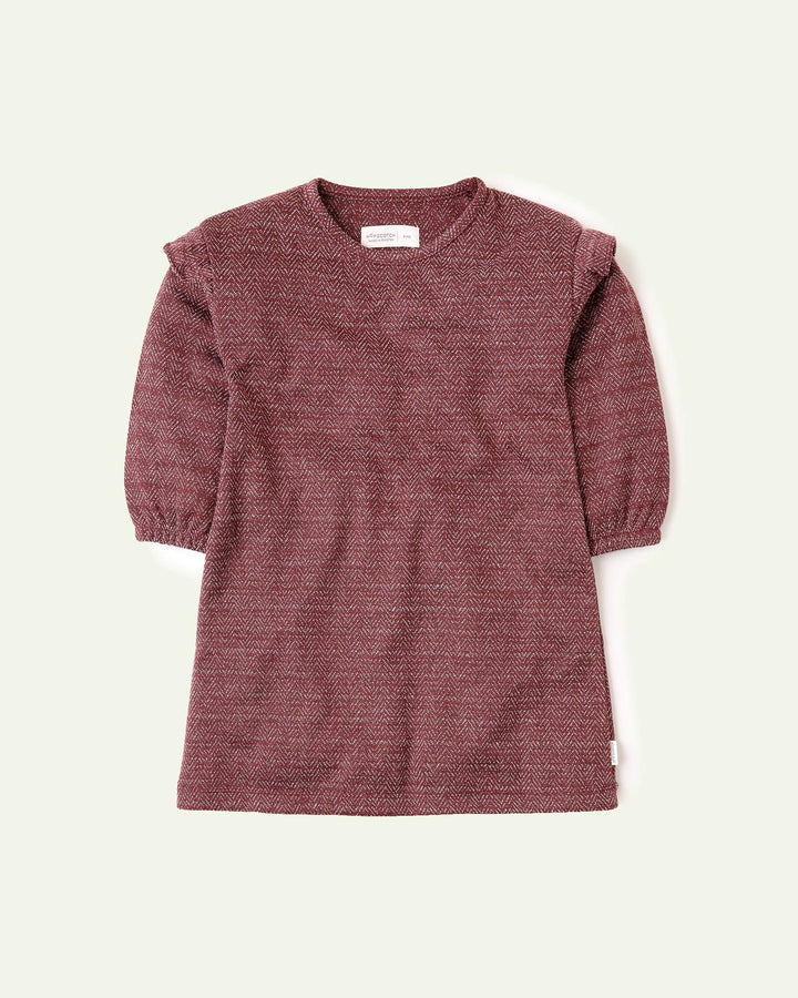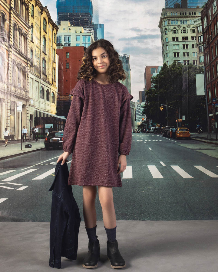 A rich maroon hue and cozy fabric make this dress a must-have for her winter wardrobe. -100% Cotton -Elasticated Sleeve Hem -Machine Wash Cold