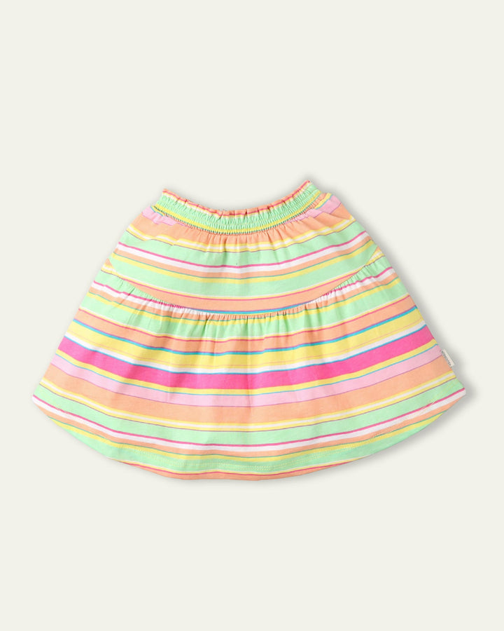 Give this bright striped skirt a whirl and watch the colors mix with each other. The elasticated waist is easy against the skin and helps you have a relaxing day. – Machine wash cold – 100% Cotton