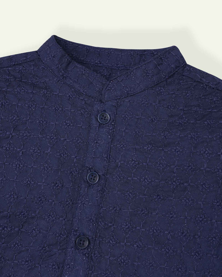 This chikankari kurta wants to take center stage! This kurta comes with a simple ban collar and branded Hopscotch buttons. - Machine Wash Cold - Chikankari - Side Pocket