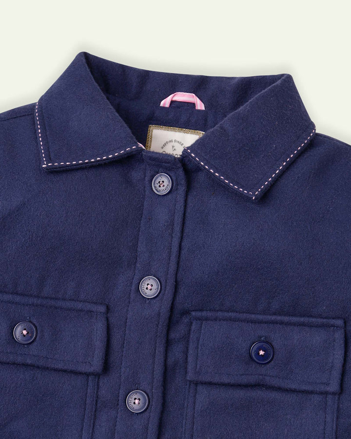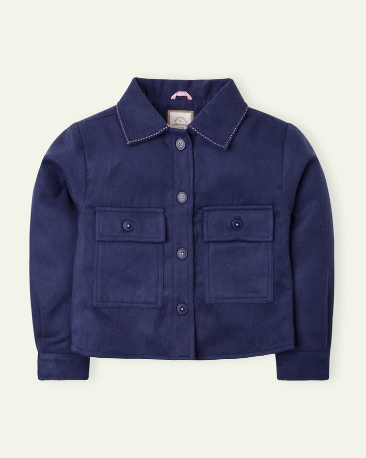 Contemporary fashion meets timeless elegance. This wardrobe essential boasts patch pockets and a sleek point collar, elevating your look with a touch of sophistication. – Contrast Thread Details in Buttons – Boxy Cropped – Flap Pockets – Point Collar – Wool – Dry Clean Only