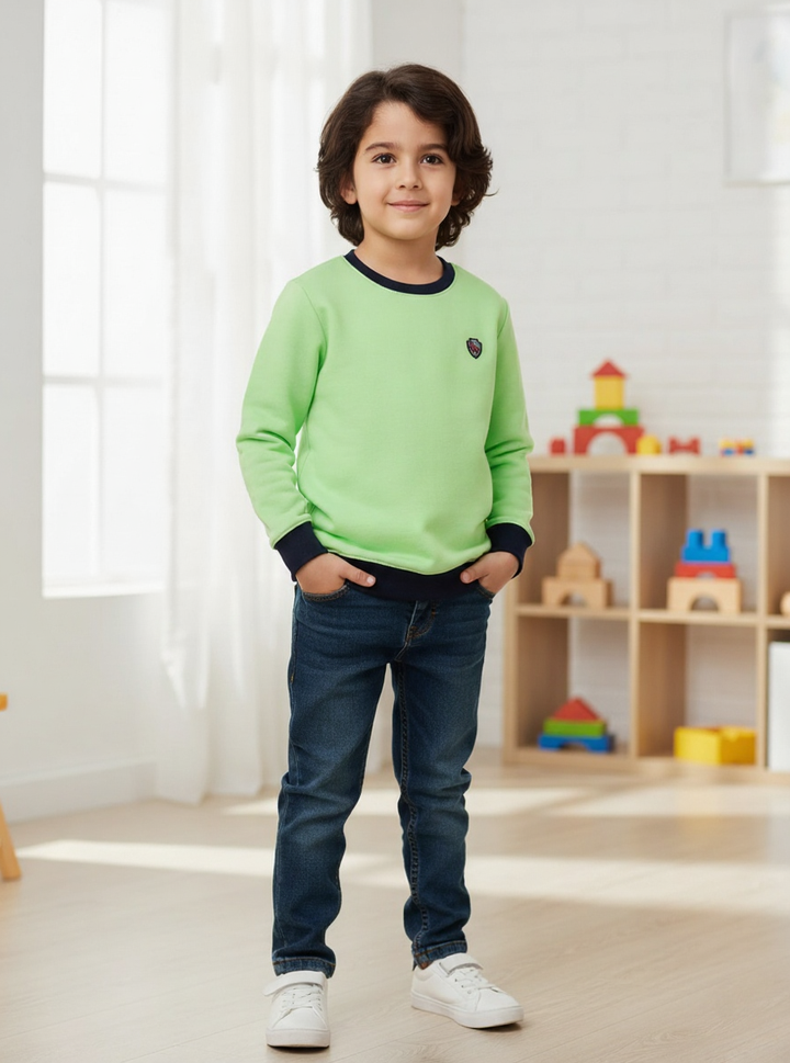 Get that sporty vibe in this vibrant neon green sweatshirt, the ultimate sweatshirt for kids who love to play. -Fleece -Machine Wash Cold