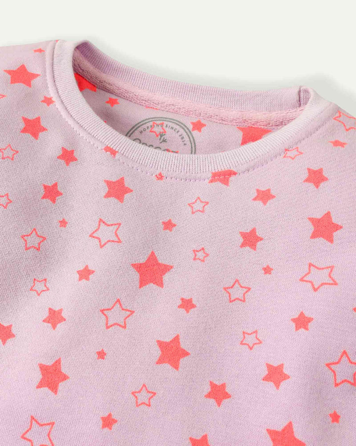 Inspired by the starry nights painting, this printed sweatshirt showcases neon stars all over. Made in terry, this oversized cropped sweatshirt keeps you warm and comfortable all day. – Machine wash cold – Terry
