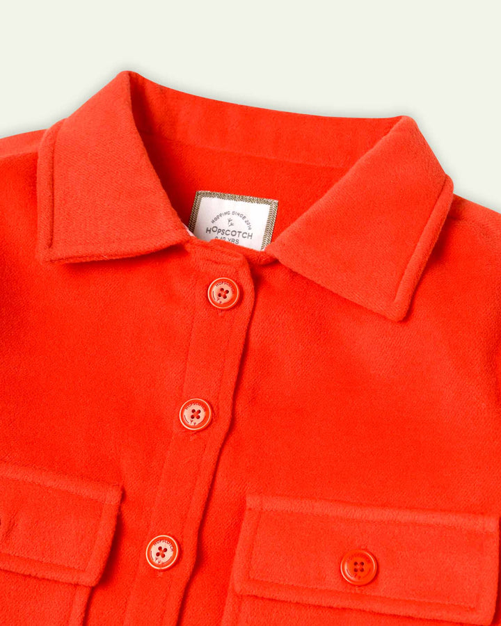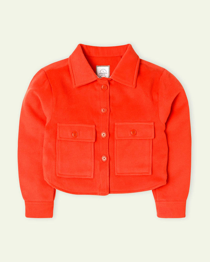 This bright woolen shacket is our take on cozy, comfy, and bright outerwear! It comes with patch pockets with flaps and a one-piece collar that gives it a cool look. We’ve also added cuffs with a placket on the sleeves and a round hem that matches a cool cropped look. – Branded Hopscotch Buttons - Cropped – Patch Pockets with Flaps – One Piece Collar – Round Hem - Wool