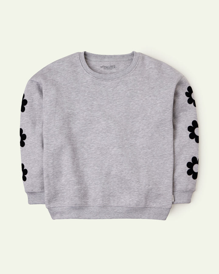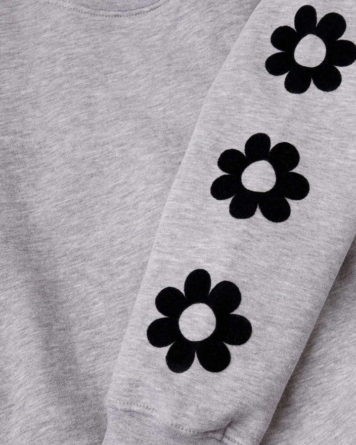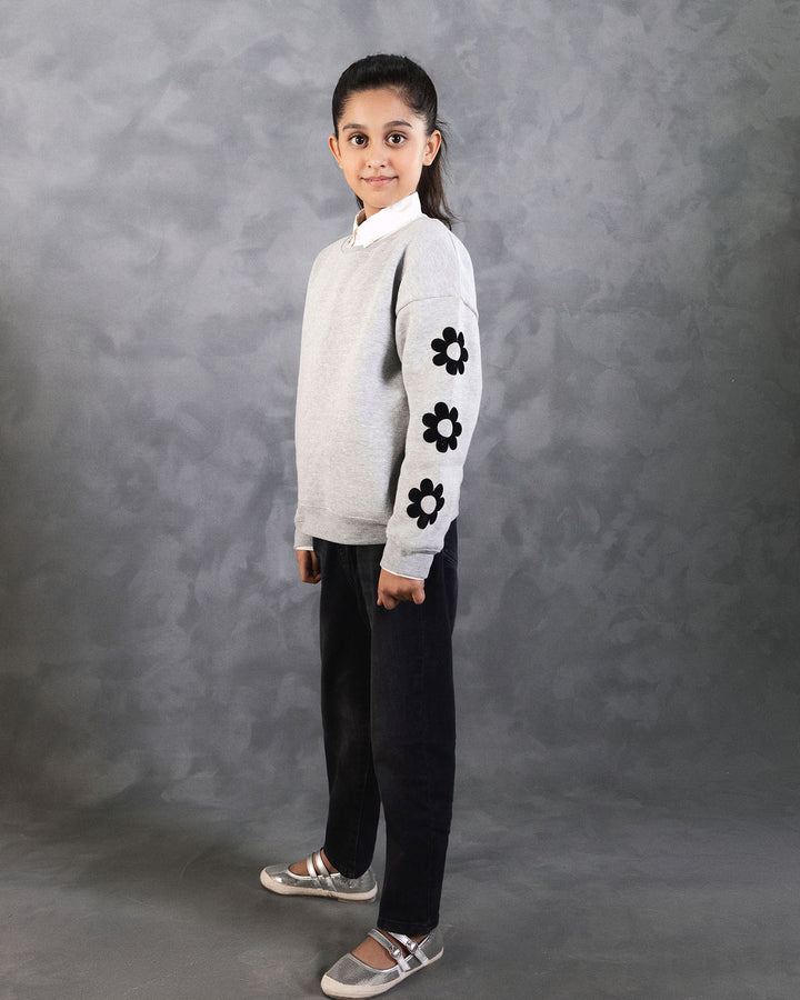 Our oversized grey sweatshirt with flock printed sleeves is a must-have for your girl’s wardrobe, offering both warmth and style. -Cotton/Polyester -Oversized -Flock Print -Machine Wash Cold