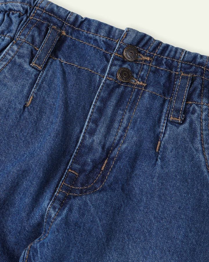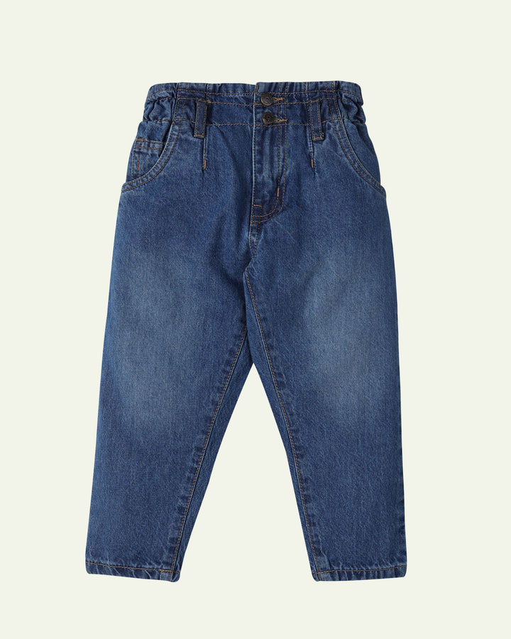 These paper bag jeans are cool and reliable for days when you are required to do extra. The easy fit and deep pockets help you stay comfortable and store your mini treasures in. - Machine Wash Cold - Denim - Five Pocket Style - Paper Bag Style - Branded Hopscotch Waist Buttons - Medium Wash
