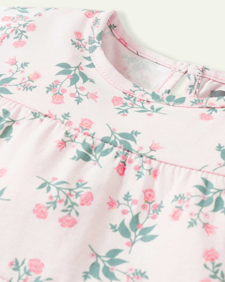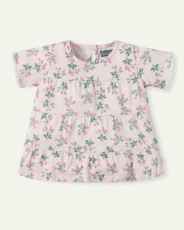 A good day starts with a comfortable and fun top and this soft cotton floral top is just the right choice for it. The tiered design gives it a breezy feel and the lace on the sleeves has been added for detail. – Machine wash cold – 100% Cotton