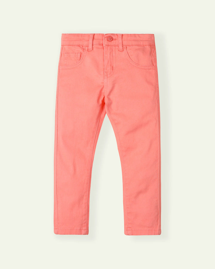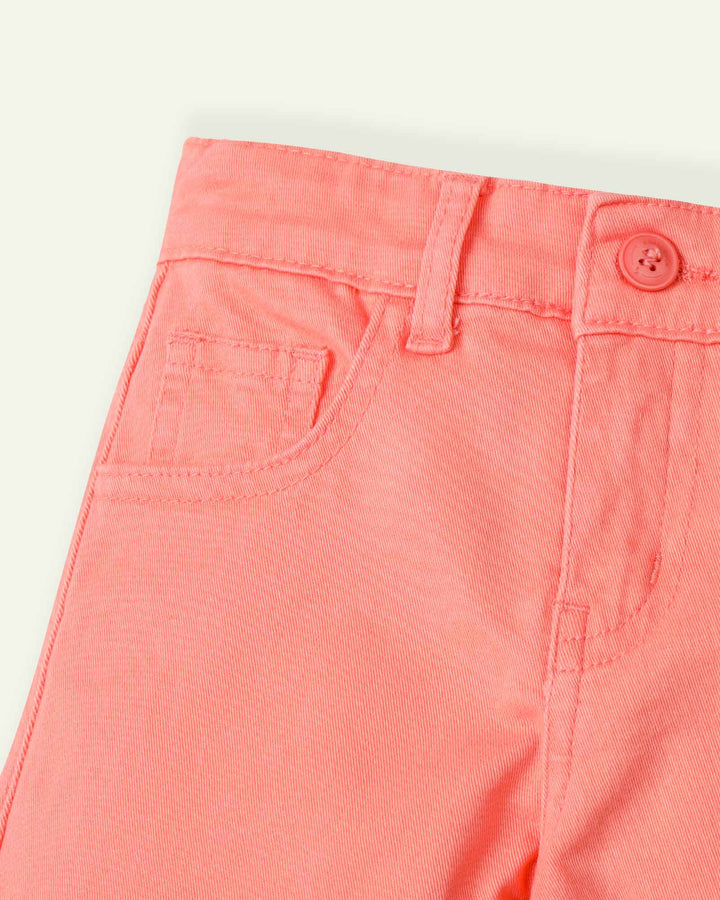 Introducing a perfect blend of comfort and style in a delightful peach color. These pants are lightweight and allow your little ones to move with ease. – Branded Hopscotch Button on Waist – Twill – Machine Wash Cold