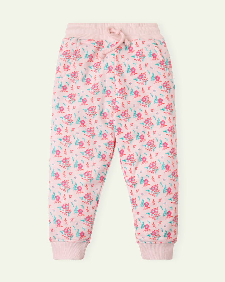 Pink tones and floral designs make these sweatpants a wardrobe must-have. -Cotton/Poly -Elastic Waistband -Drawstrings -Cross Pockets -Machine Wash Cold