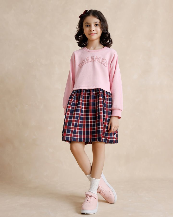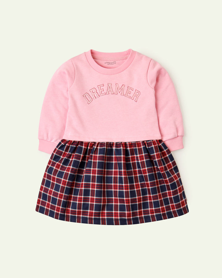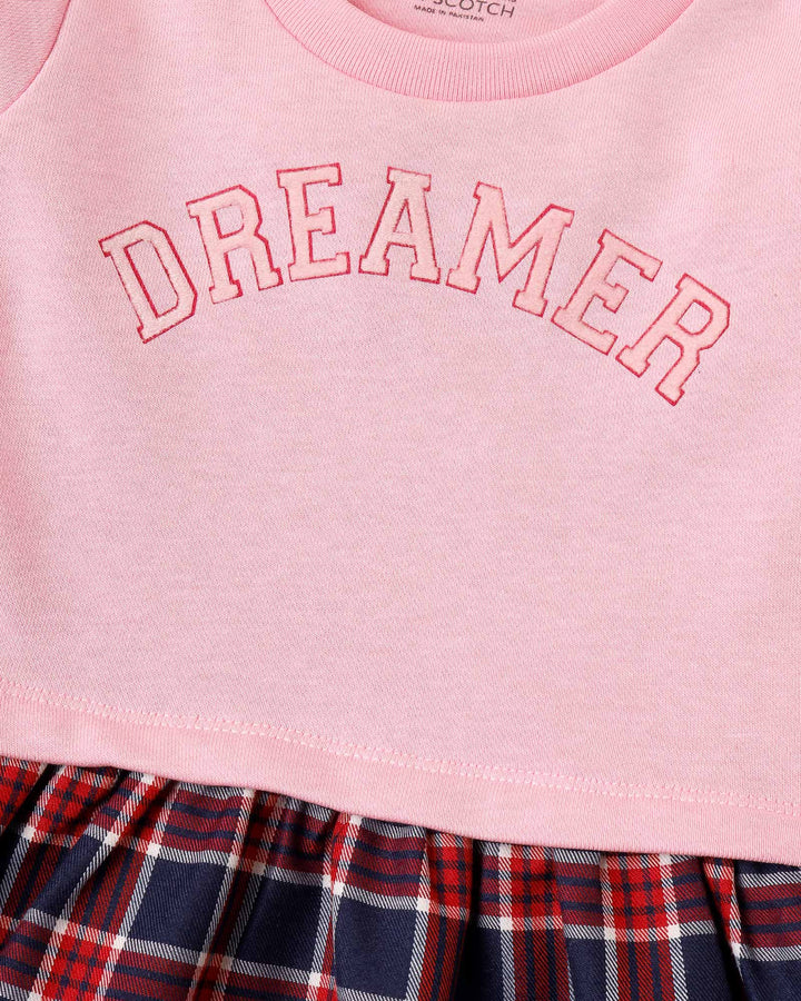 Our mix media plaid dress offers a unique blend of textures and patterns for your little one to standout. -100% Cotton -Flock Print -Machine Wash Cold