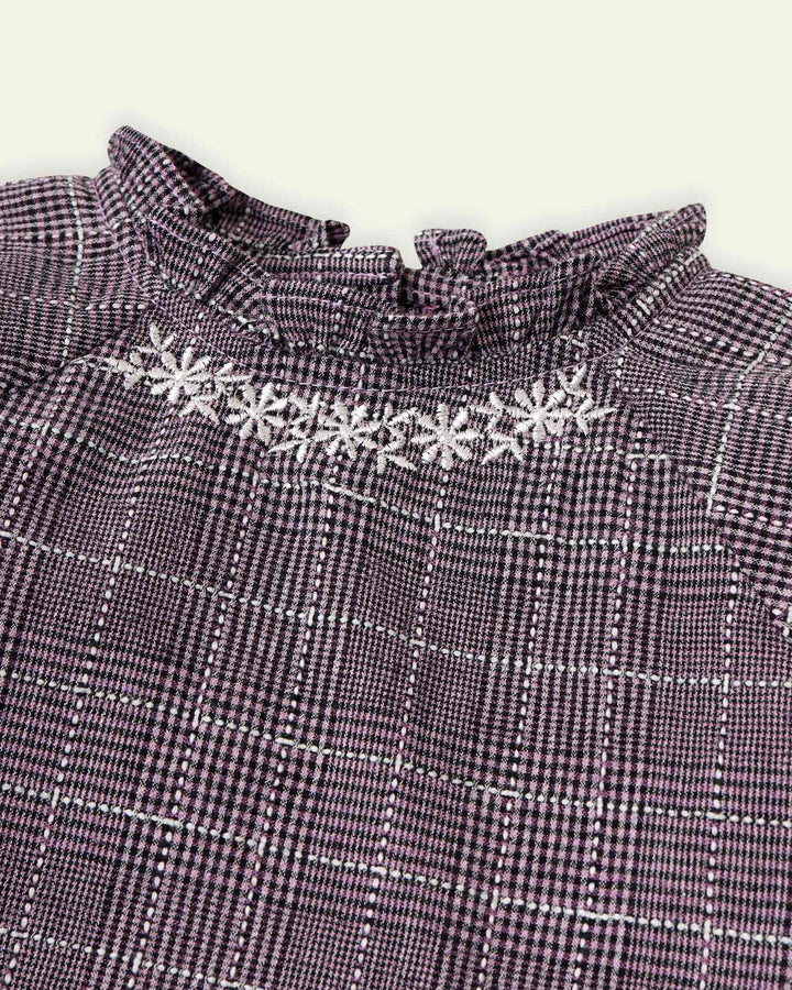 Its always a good idea to wear plaids! This embroidered top comes with raglan sleeves and frill on the neckline making it perfect for morning to evening looks. – Embroidery – Raglan Sleeves – Plaid – Machine Wash Cold