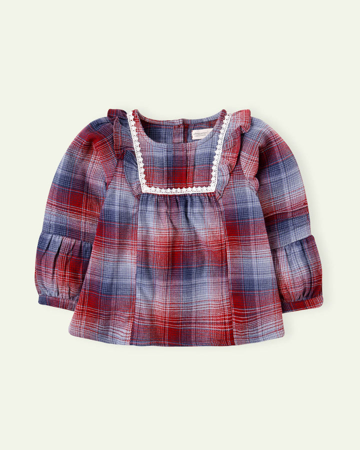 A charming check and a nostalgic shape make this blouse a winner for any casual occasion in our book. Its cotton composition means it’s ideal for layering too. – Lace – Pleats – Flannel – Machine Wash Cold