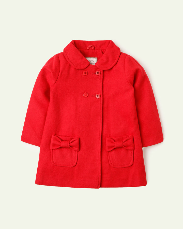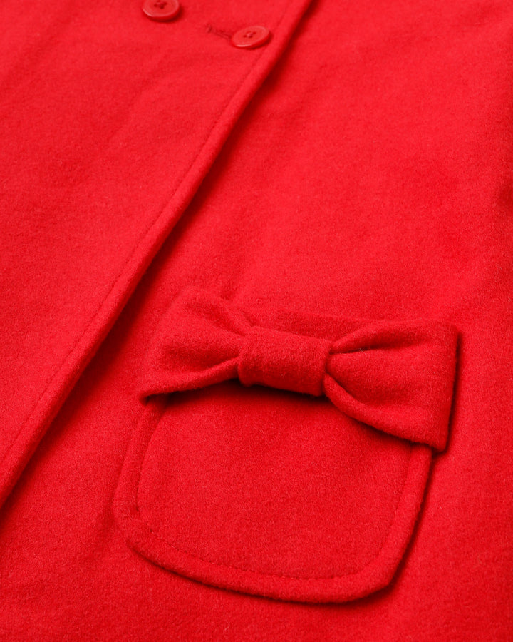 Add a touch of elegance to her winter wardrobe with this bow-adorned red coat. -100% Wool -Dry Clean Only -Double Breast -2 Front Pockets