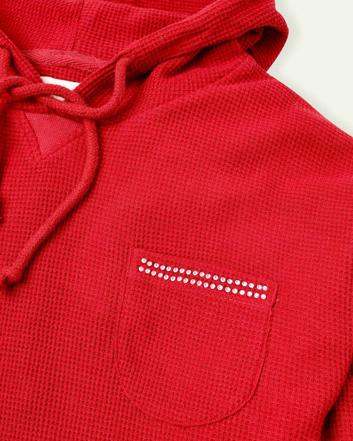 Hoodie dresses are the new cool! This waffle knit hoodie dress has diamantes on the pocket for some bling. – Oversized – Low Waist – Waffle Knit – Machine Wash Cold