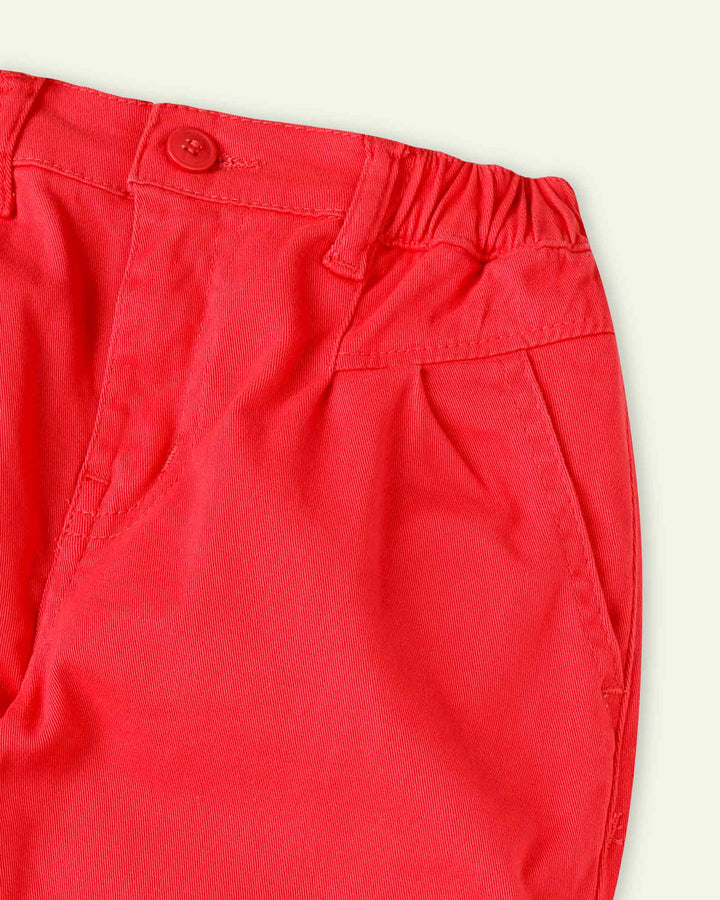 Rev up the style quotient! These red pull-up pants for little fashionistas are ready for playtime! – Branded Hopscotch Button on Waist – Cross Front Pockets – Twill – Machine Wash Cold