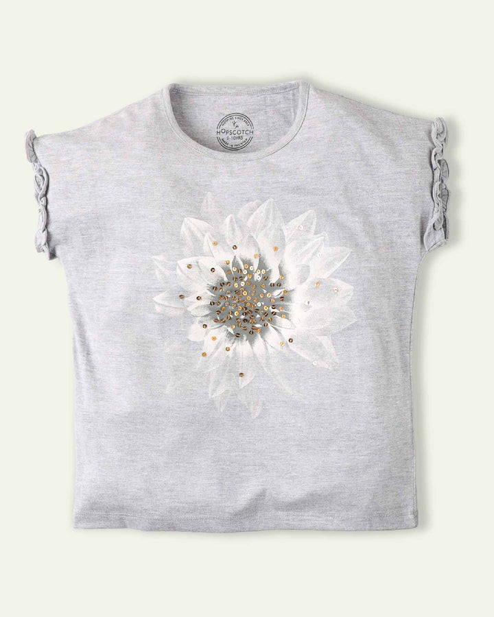 This soft cotton T-shirt is a lovely addition to your little one's summer wardrobe. It’s easy to wear and style, and made from soft cotton providing comfort for your little girls' delicate skin. The sleeves are lined with frill and the half tone screen printed graphic is sprinkled with some shiny sequins to make it pop! – Machine wash cold – 100% Cotton – Half tone screen printing