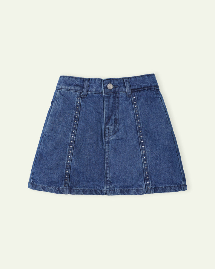 It’s always a good idea to wear a denim skirt with a cool top to a girls party! This one comes with diamantes on top for some bling. We’ve also added side pockets to help you store your mini essentials in. - Machine wash cold - Denim - Diamantes - Side Pockets - Branded Hopscotch Button on the Waist