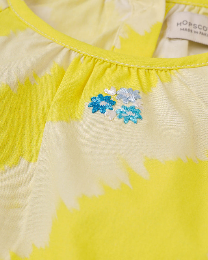 Swirls of color and intricate embroidery of this tie & dye cotton top will make your girl standout. -100% Cotton -Embroidered -Back Placket Opening -Elastic Bottom Hem