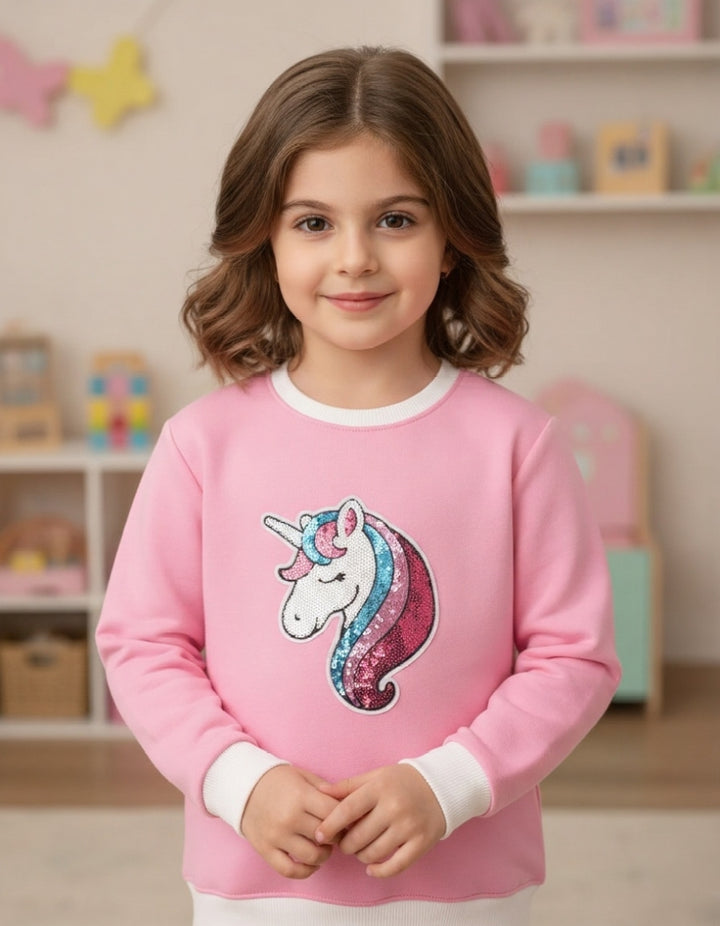 An enchanting unicorn sweatshirt with dazzling sequins for your little girl. -Fleece -Sequins -Machine Wash Cold