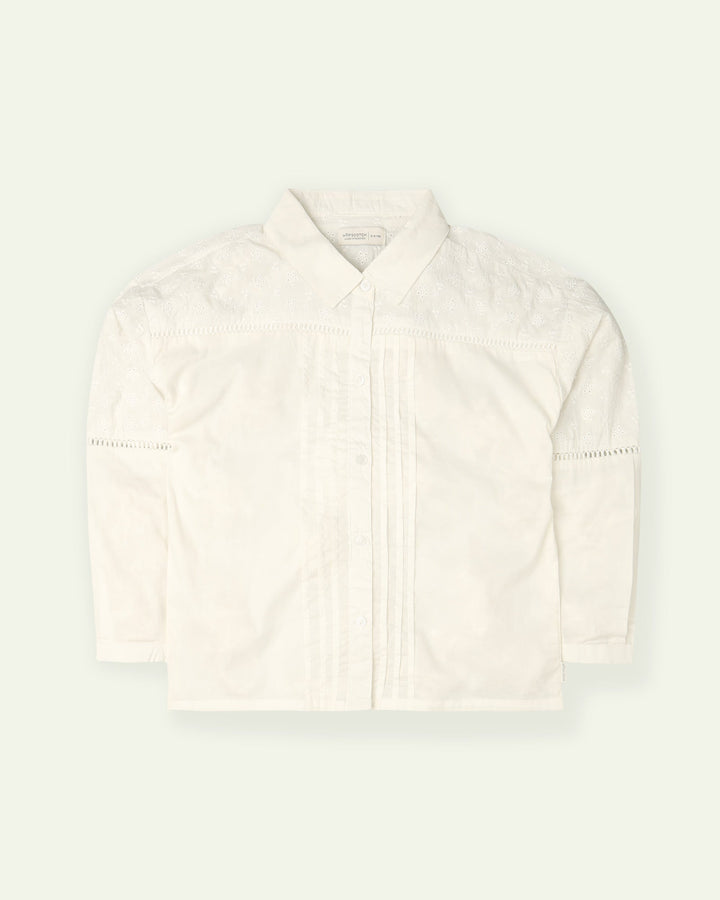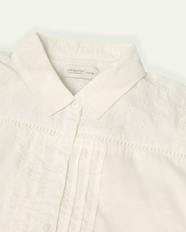 A cool top for family lunches and kitty parties. The chikankari on the shoulders and sleeves is balanced with pleats and a buttoned-down style to keep it sophisticated and cool at the same time. – Pleats – 100% Cotton – Machine Wash Cold
