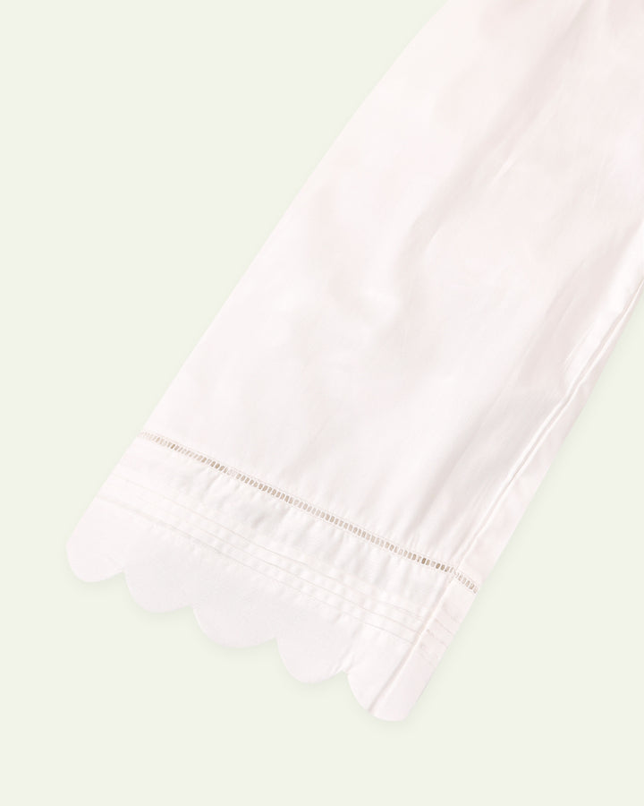Scalloped hem with ladder lace and pleates. Upgrade your basic white trouser. - 100% Cotton - Machine Wash Cold