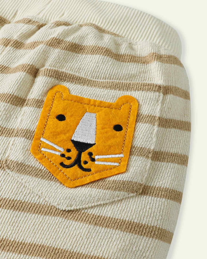 The jungle explorer look is incomplete without these terry shorts. They come with a drawstring style and an appliqued wild cat on the back pocket to add some character to it. – Machine wash cold – Terry - Premium Hopscotch Label