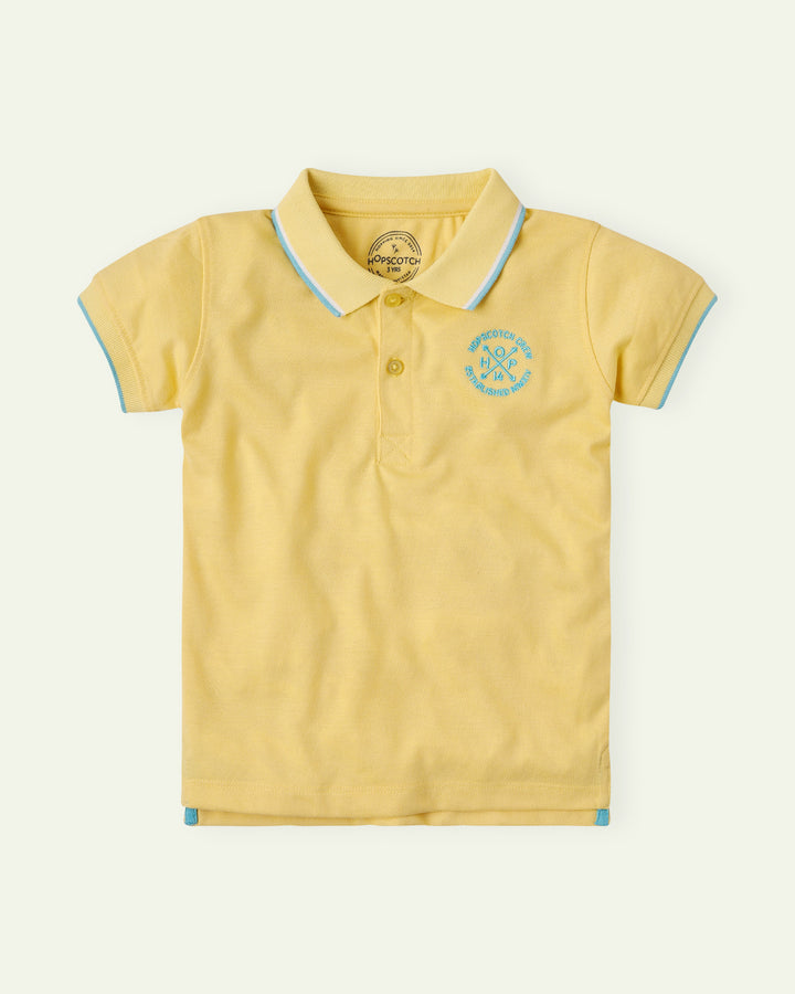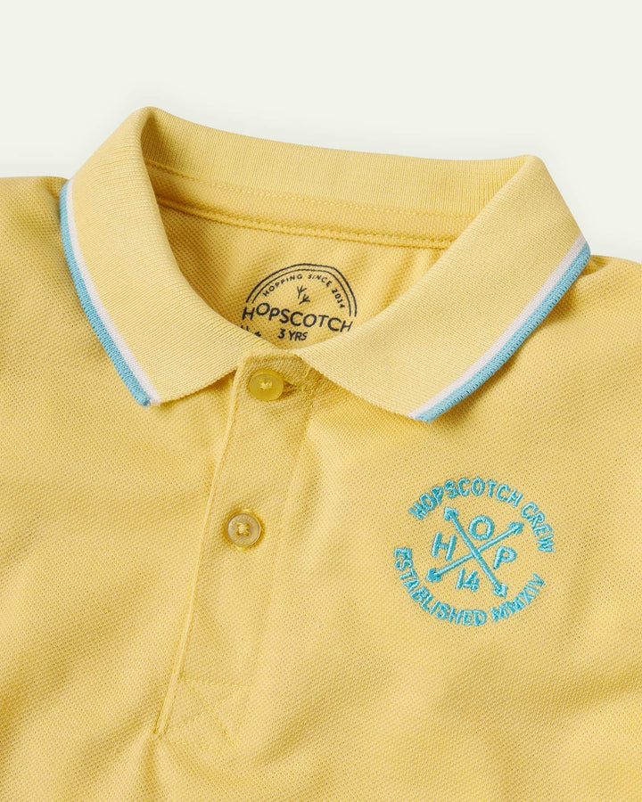 This lemon yellow polo in pique with tipping around the collar and sleeves is a perfect summer staple. Join the Hopscotch crew. - Pique - Embroidered - Machine Wash Cold