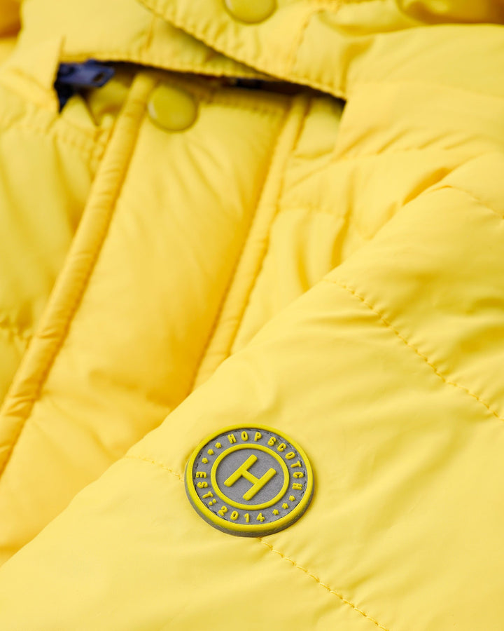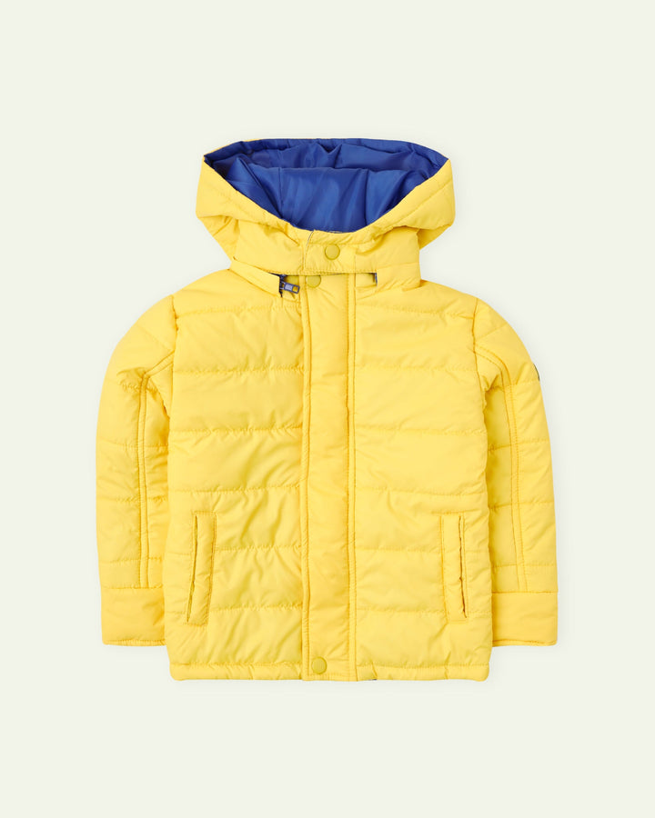 A bright puffer jacket for cold winter days to make them lively! This one comes with a detachable hood and snap buttons with a zipper to help you adjust to the sudden rise and fall in temps. – Zipper – Snap Buttons – Front Pockets – Detachable Hood – 100% Polyester – Hand Wash - Signature Silicon Badge